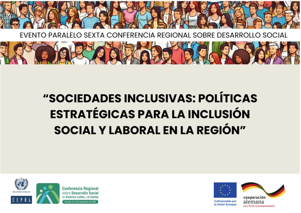 En el marco de la VI Reunión de la Conferencia Regional sobre Desarrollo Social de América Latina y el Caribe, y las actividades implementadas por la Alianza Estratégica CEPAL-BMZ/giz y la Iniciativa Team Europe Inclusive Societies, se realizará el evento paralelo “Sociedades inclusivas: políticas estratégicas para la inclusión social y laboral en la región”, con el fin de abrir un espacio de diálogo e intercambio de aprendizajes entre gobiernos sobre políticas estratégicas al interior de los sistemas de protección social, orientadas a promover mayores niveles de inclusión social y laboral.