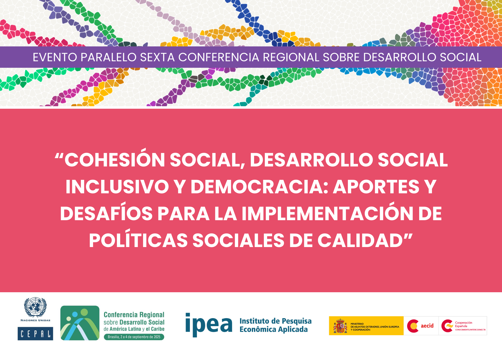 A partir de estos antecedentes, en el marco de la Sexta reunión de la Conferencia Regional sobre Desarrollo Social de América Latina y el Caribe, se propone abrir un espacio de reflexión y diálogo entre altas autoridades de desarrollo social y especialistas en torno a los aportes y desafíos de la cohesión social en su vínculo con las políticas de desarrollo social inclusivo y con la democracia. Este espacio de discusión propuesto permitirá a ministras y ministros de desarrollo social de la región compartir experiencias y reflexionar sobre cómo las políticas sociales, especialmente aquellas de protección social no contributiva e inclusión, contribuyen a fortalecer la cohesión social en dimensiones clave como la confianza, la convivencia y el sentido de pertenencia.