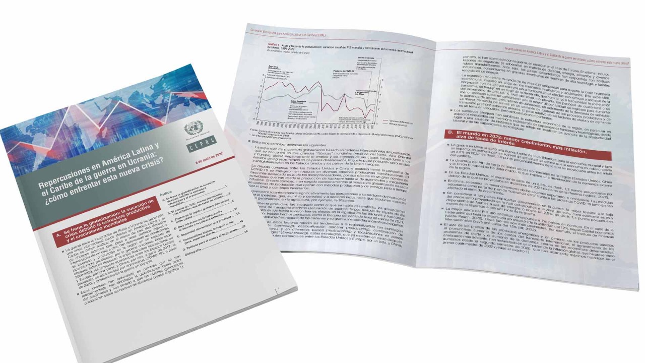 El informe Repercusiones en América Latina y el Caribe de la guerra en Ucrania: ¿cómo enfrentar esta nueva crisis? informe especial de la CEPAL examina el impacto económico y social de la guerra en Ucrania en la región y entrega recomendaciones a los países sobre cómo enfrentar sus efectos. Fue presentado en una conferencia de prensa por el Secretario Ejecutivo Interino de la Comisión, Mario Cimoli, resaltando que la presente coyuntura no debe ser vista como un fenómeno aislado pues sus efectos se combinan con los causados por más de un decenio de crisis acumuladas: la crisis financiera internacional, las tensiones económicas entre Estados Unidos y China, y la pandemia. El documento analiza las distintas variables económicas y sociales, así como los diferentes sectores de la economía regional que se han visto afectados por el conflicto bélico que comenzó en febrero de este año, y presenta propuestas de política para mitigar sus impactos en el proceso de recuperación poscrisis del COVID-19 que aún enfrenta la región.